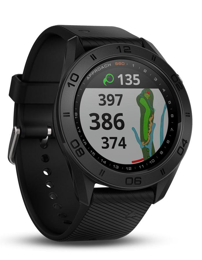 Get beyond the clubhouse with this modern designed golf watch from the Approach S60 series from Garmin. Features include yardages and PlaysLike Distance to help select clubs for uphill and downhill shots on more than 40,000 courses worldwide. Receive all the critical information you need while on the course with smart notifications in full color on your wrist. This model features a black polymer case and black silicone QuickFit band that interchanges with no tools required.