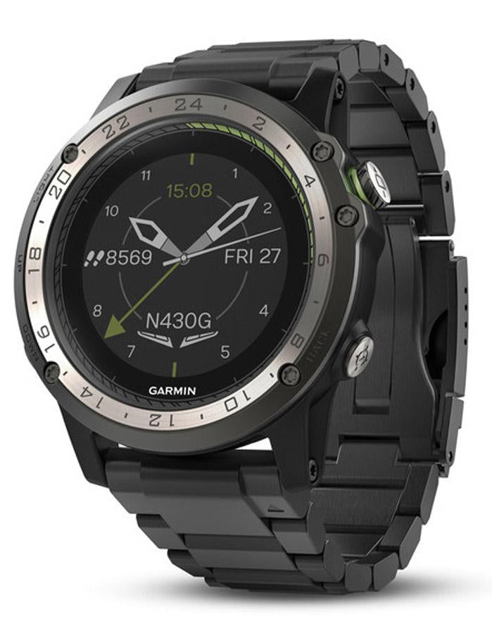The unstoppable aviator's companion from Garmin with high performance functionality in premium titanium. Set a new standard of on-wrist reference with full-color dynamic moving map, GPS navigation, NEXRAD weather display, airport information and automatic flight logging. No matter your destination, receive smart notifications (emails, text messages, alerts and more) on your customizable display, and stay fit between flights with wrist-based heart rate monitoring, activity profiles, fitness tracking and more. Includes a trial subscription to Garmin Pilot that offers the ability to file, amend, and close VFR flight plans globally & IFR in the US and Europe, pilot logbook with auto logging, and more.