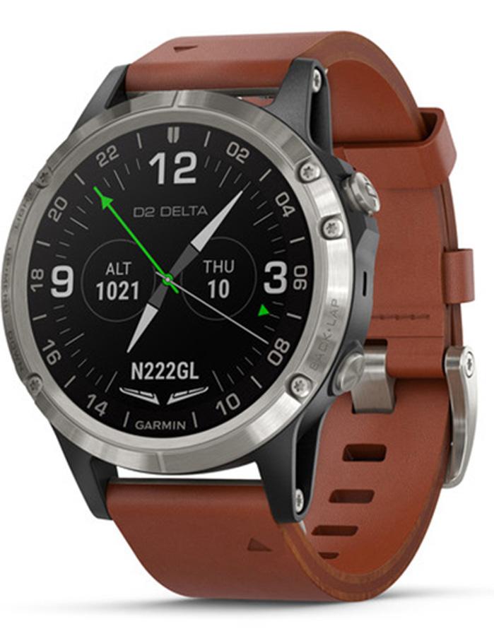 Evolve to the latest in premium GPS flight navigation with Garmin's D2 aviator series. Featuring a brown leather strap, wrist based heart rate monitor, dynamic color mapping, NEXRAD weather, automatic flight logging and alerts for course deviations, pattern altitudes and more. Smart notifications will keep you in touch while on the go while sport watch functions will keep your fitness on track. Includes additional black silicone strap.