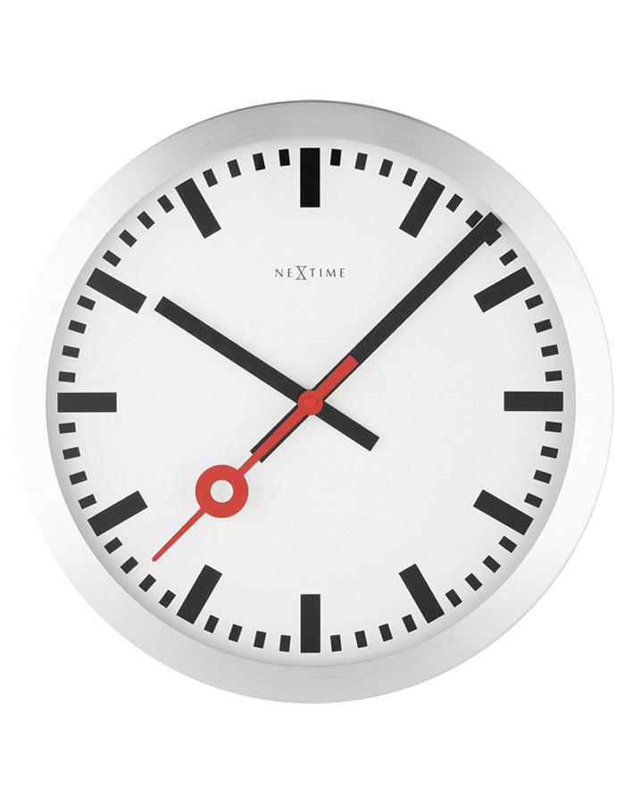NeXtime Station Clock - Silver Case - White Dial - Bold Black Hands & Indexes