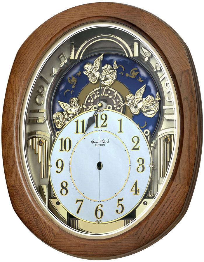 Rhythm Joyful Blessings Muscial Motion Wall Clock - 30 Melodies - Oak Case