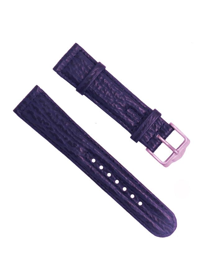 Replacement strap for Citizen Promaster Diver watch. Featuring blue shark skin textured leather band and keepers, and brushed stainless steel buckle closure.