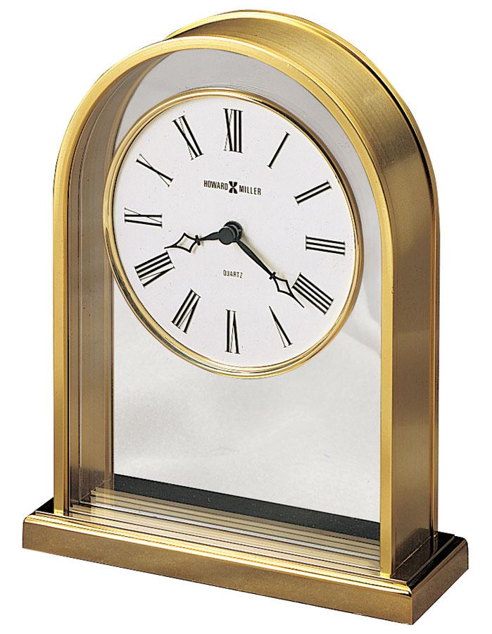 This charming and elegant tabletop clock will add a touch of class to your decor, featuring a brass finished arch over a cream colored dial with Roman numerals.