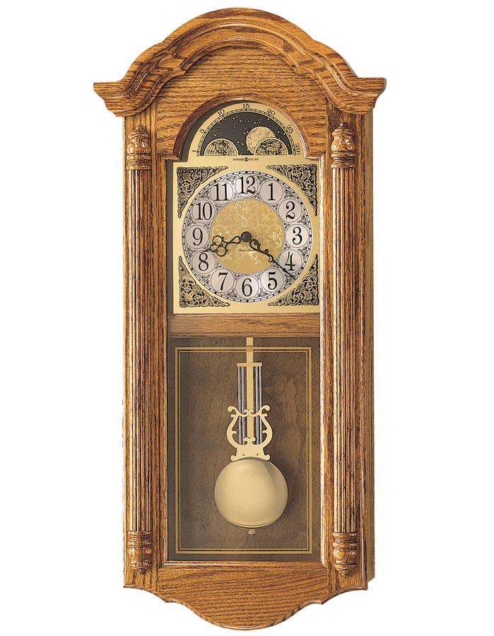 This appealing pendulum wall clock will bring warmth to whatever home it is placed, featuring a light Golden Oak finish and a brass-finished dial with delicate details, in addition to chiming hourly or quarter-hourly.