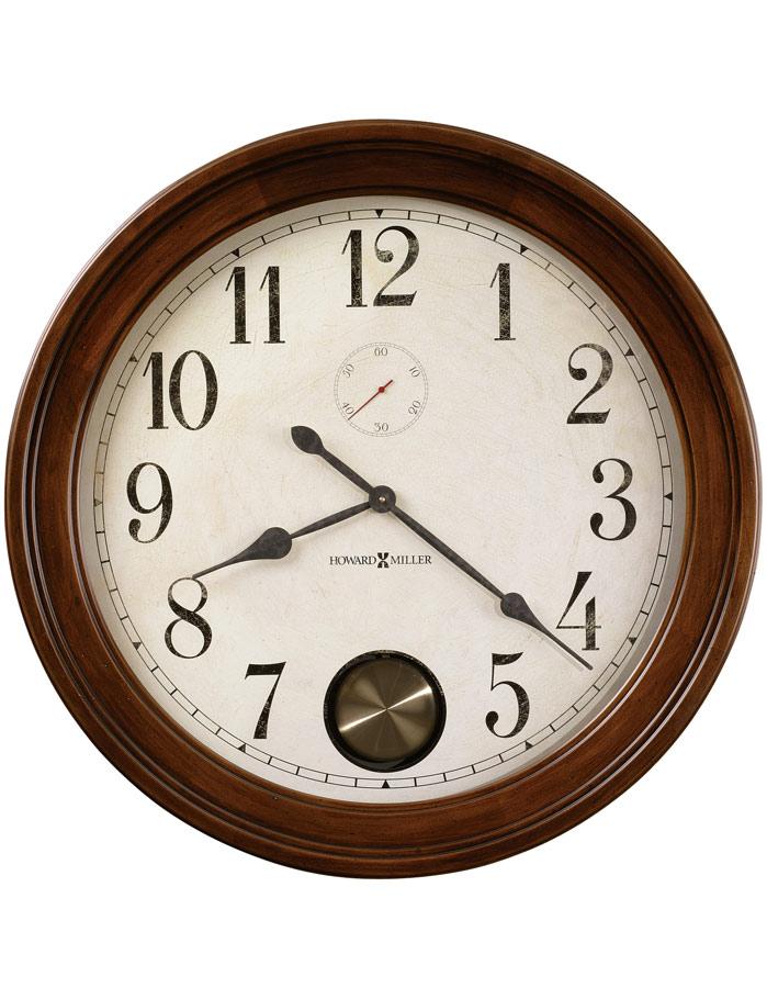 This simple and classic wall clock is perfect for the office or any other room, featuring an off white dial surrounded by a wooden frame with a Hampton Cherry finish, in addition to a brass-finished pendulum, visible though a peephole at the 6 o'clock position.