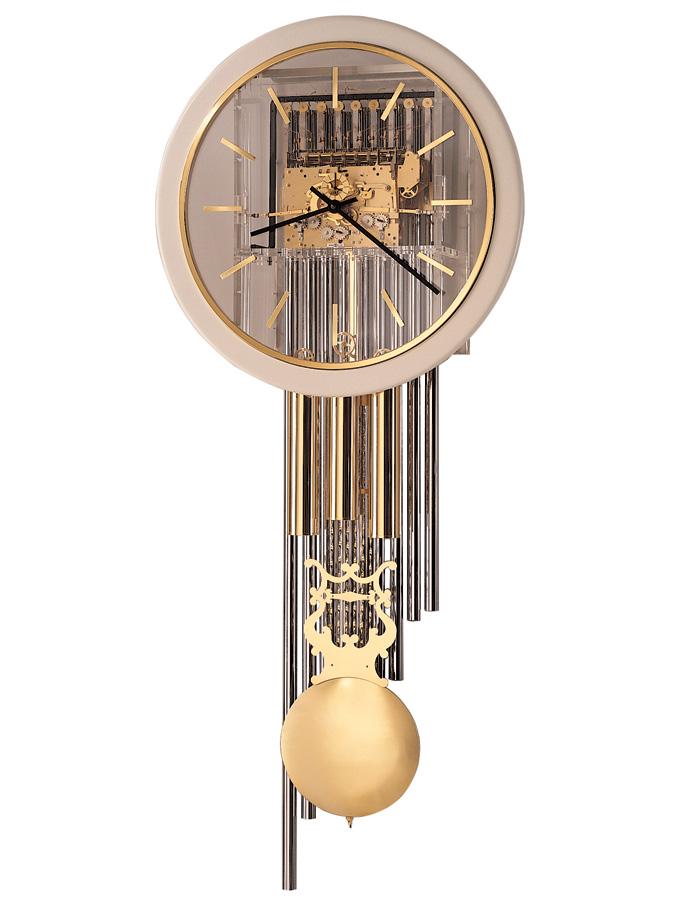 With an arresting visible high-precision movement, this captivating wall clock will look great on your walls, featuring a clear dial with brass accents and a decorative pendulum underneath complemented by nine chrome-plated tubes, playing a choice of three chimes.
