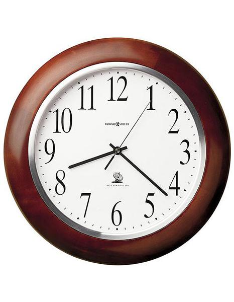 Receiving a radio signal from the cesium atomic clock, this highly accurate wall clock will automatically reset itself and will adjust for Daylight Savings Time. Built with an easy-to-reference white dial and refined Windsor Cherry finish, this Howard Miller clock is the perfect accompaniment to any room.