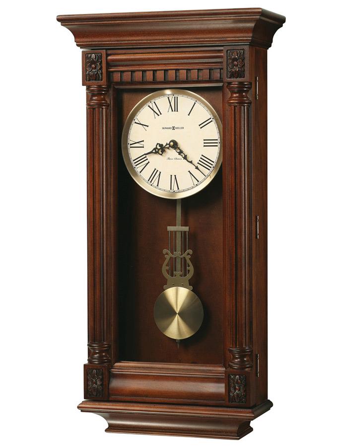 This lovely pendulum wall clock features the option of either Westminster or Ave Maria chimes and quarterly hour strikes. Designed with a warm, Tuscany Cherry finish, detailed molding and fluted columns it is perfect fit for almost any traditional home decor.