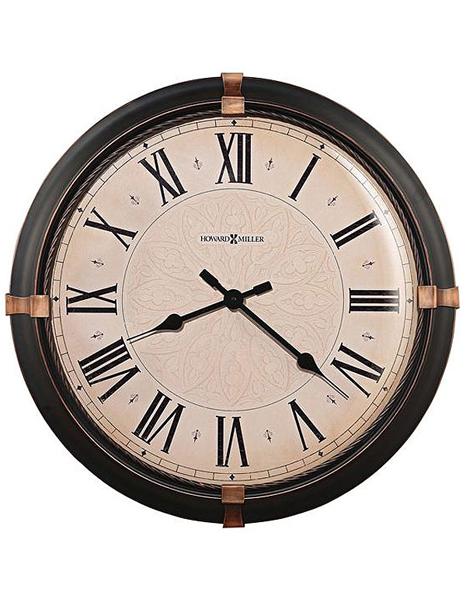 An industrial, twisted metal ring surrounds the delicately detailed dial on this large wall clock from Howard Miller. It's aged bronze accents and dark-rubbed bronze finish make it an eye-catching addition to any room.