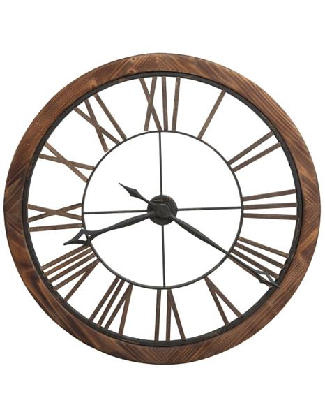 Featuring a unique open dial to show the wall underneath, this oversized Thatcher wall clock will add character to any room it hangs in, constructed of a combination of a wooden outer frame and aged brown metal inner rings.
