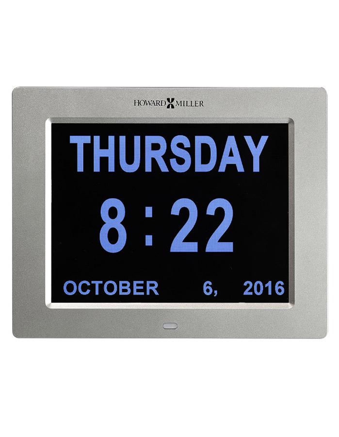 This ingenious Howard Miller clock is designed to help people suffering from memory loss or dementia, poor or impaired eyesight, or those who have a hard time comprehending abbreviated words by displaying the time and clearly spelling out the full day of the week, month and date in large, bold letters. A second display option simply shows the day of week and period of the day — morning, afternoon, evening or night.