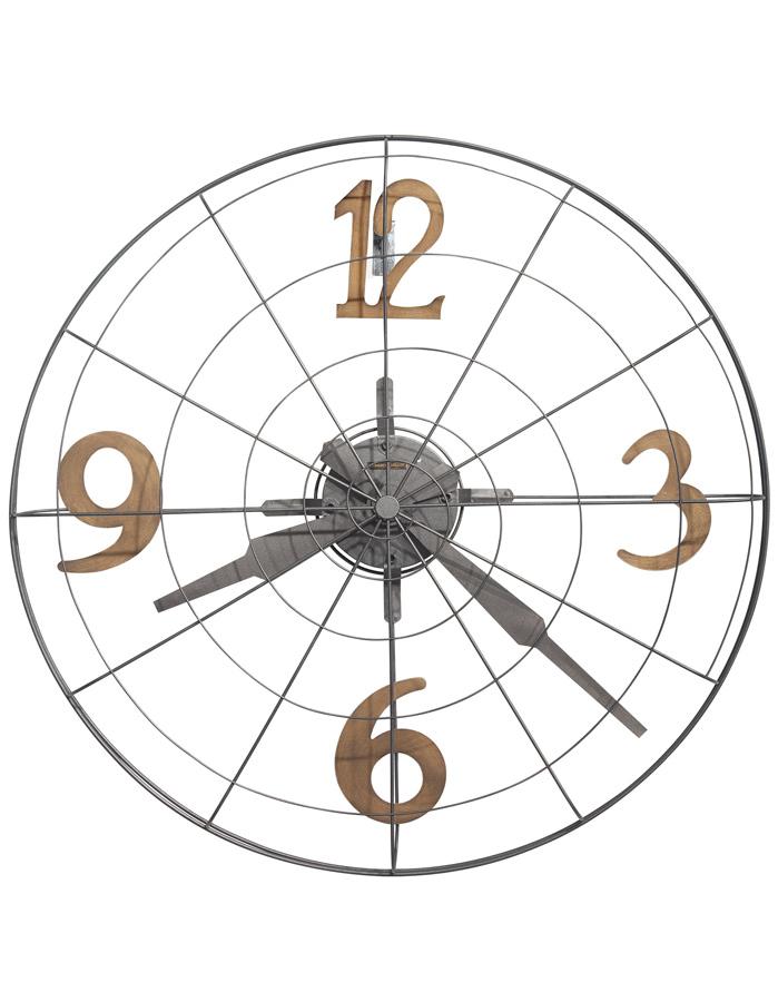 Modelled after the look of a vintage fan, this oversized Phan wall clock will generate interest on whatever wall it is hung, featuring a warm gray finish to the open dial and applied, gold-tone numerals.