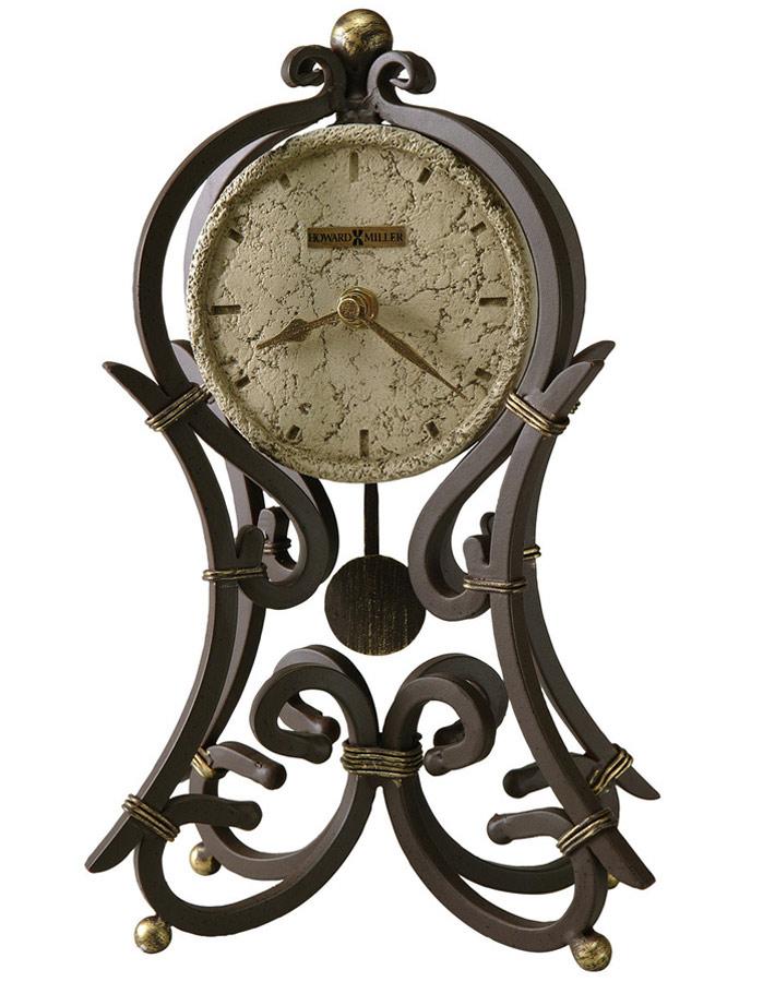 With an unconventional stone dial set within a wrought iron frame, this intriguing Vercelli pendulum mantel clock will create interest in whatever room it is placed.