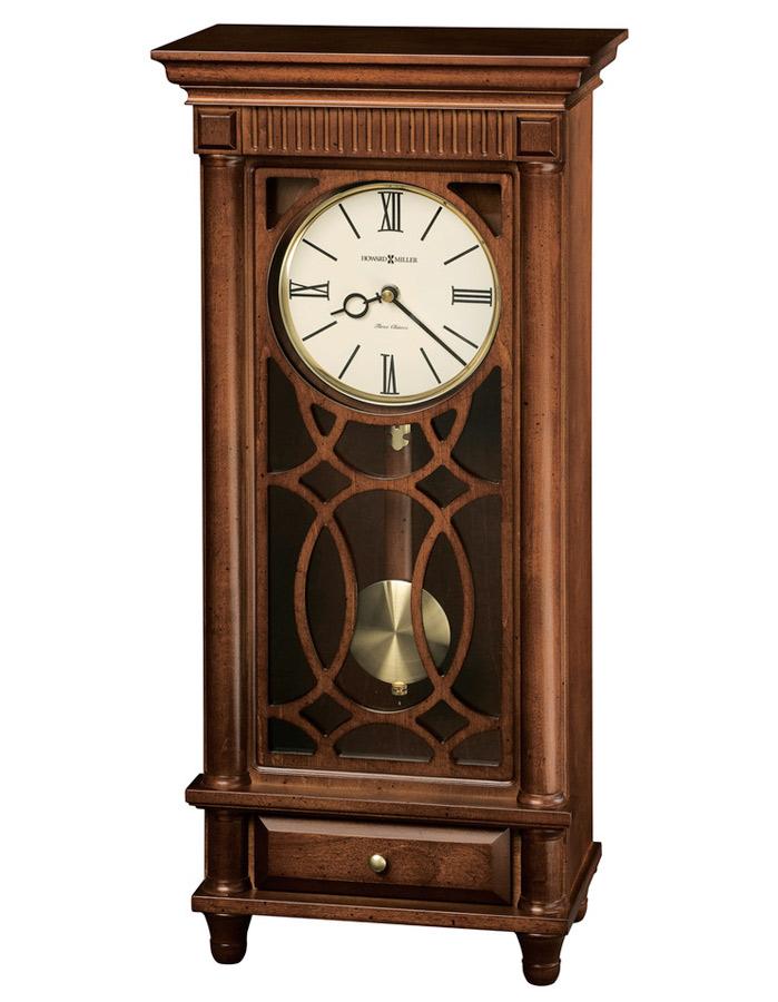 Featuring a beautifully designed cut wood grill front and storage compartment this unique table clock is a great alternative to a pendulum wall clock.