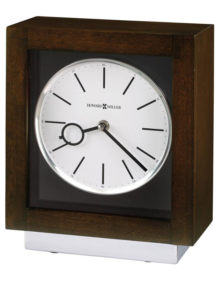 • This rectangular mantel clock is finished in Espresso on select hardwoods and veneers, is supported by a polished chrome plated metal-wrapped base, and features a floating dial.