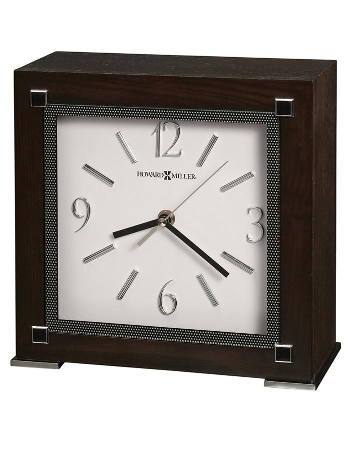 - Black Coffee finished mantel clock on select hardwoods and oak veneers with polished chrome-finished, plated metal feet.