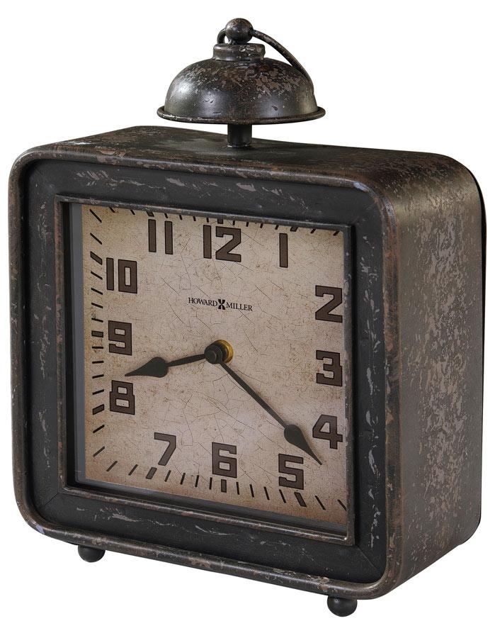 With an antiqued design evocative of a vintage timepiece, this compelling Collins clock will add personality to your desk or mantel, featuring a rounded, distressed metal case with a decorative faux bell on top.