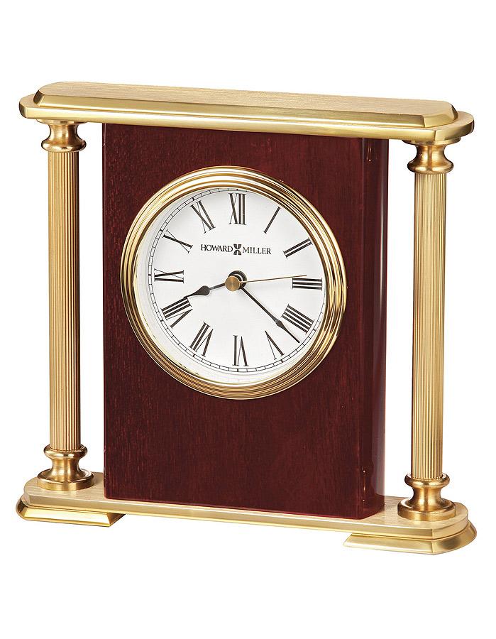 An elegant desk or table clock for home or office. Features a rich rosewood finish with brass accents and Roman Numeral dial.
