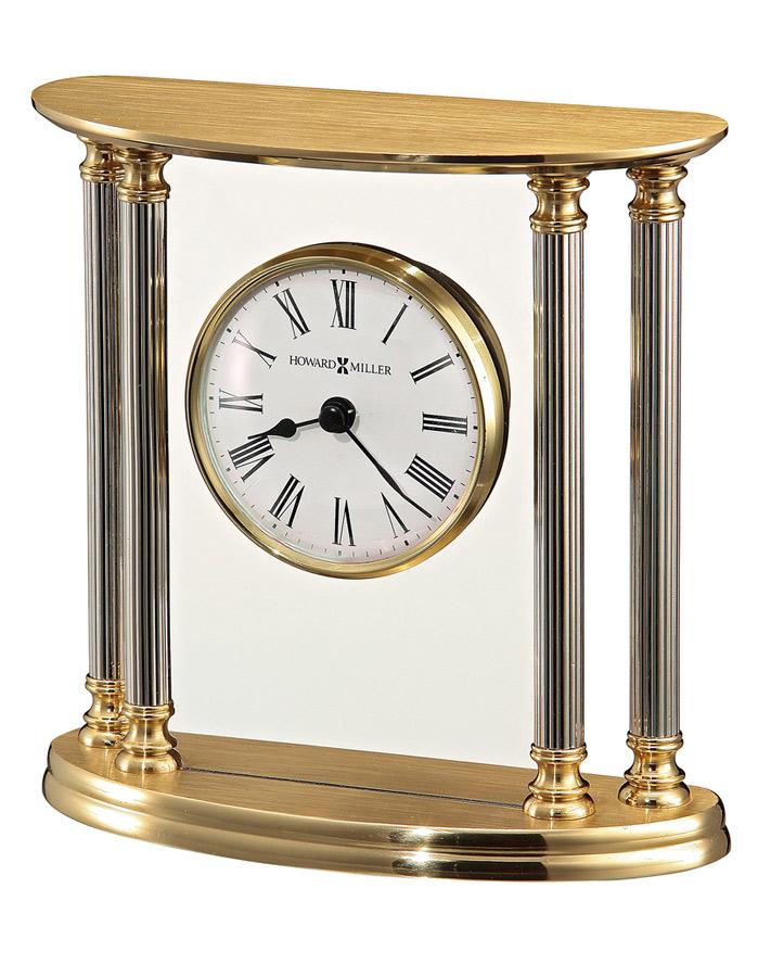 - A distinctively shaped, solid brass table clock, features polished, silver tone accents, palladium plated.