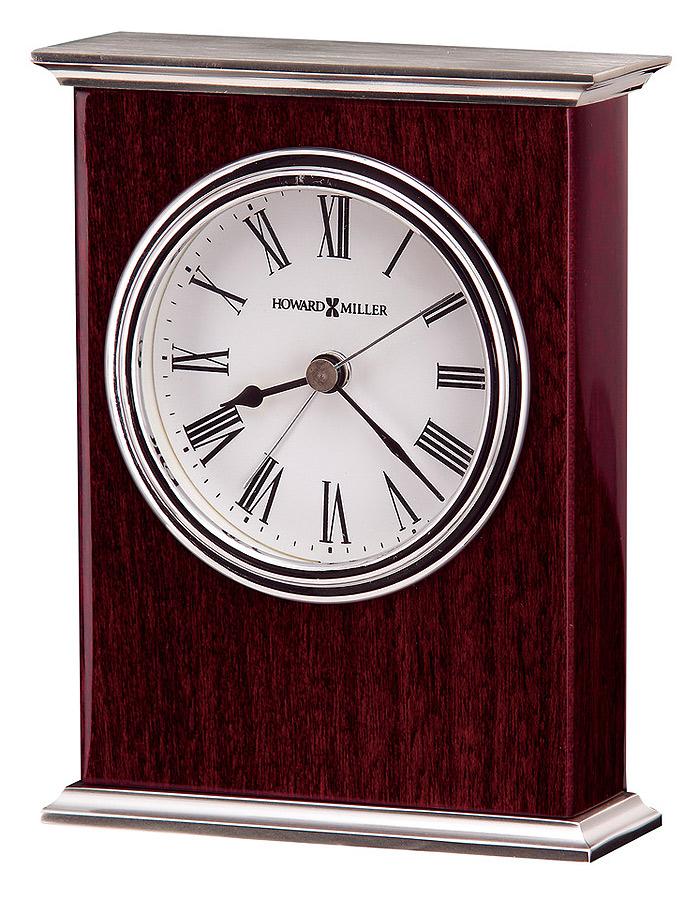 This handsome little alarm clock features a rich rosewood finish and nickel tone top and base with a silver tone dial bezel.