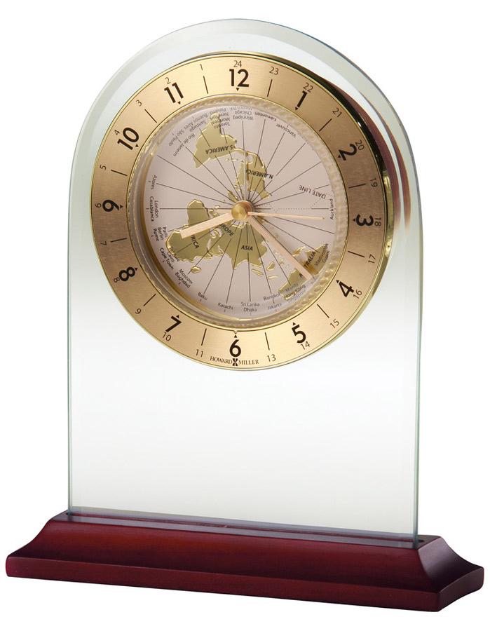 Howard Miller World Time Arch Clock - Glass & Roswood - Brass Clock Accents