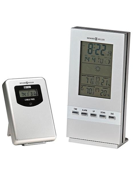 This functional Weather Sentinel can conveniently transmit both outdoor temperature and humidity to the clock without the use of any wires. Featuring a useful weather trend companion, moon phase and crescendo alarm, this clock is an ideal weather companion.