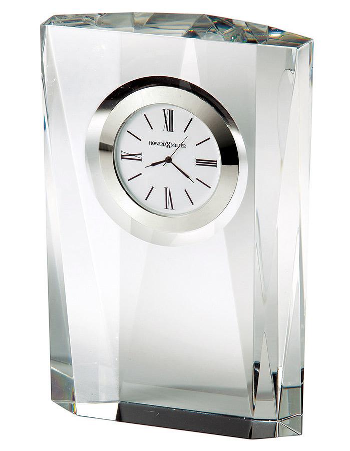 - This striking optical crystal clock features multi-faceted sides.