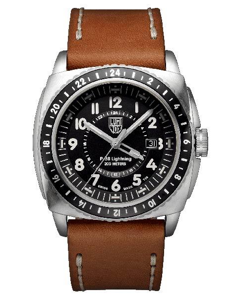 Taking inspiration from the innovative P-38 Lightning fighter planes of WWII, this high quality flight watch features a tough stainless steel case paired with a comfortable genuine brown leather strap.