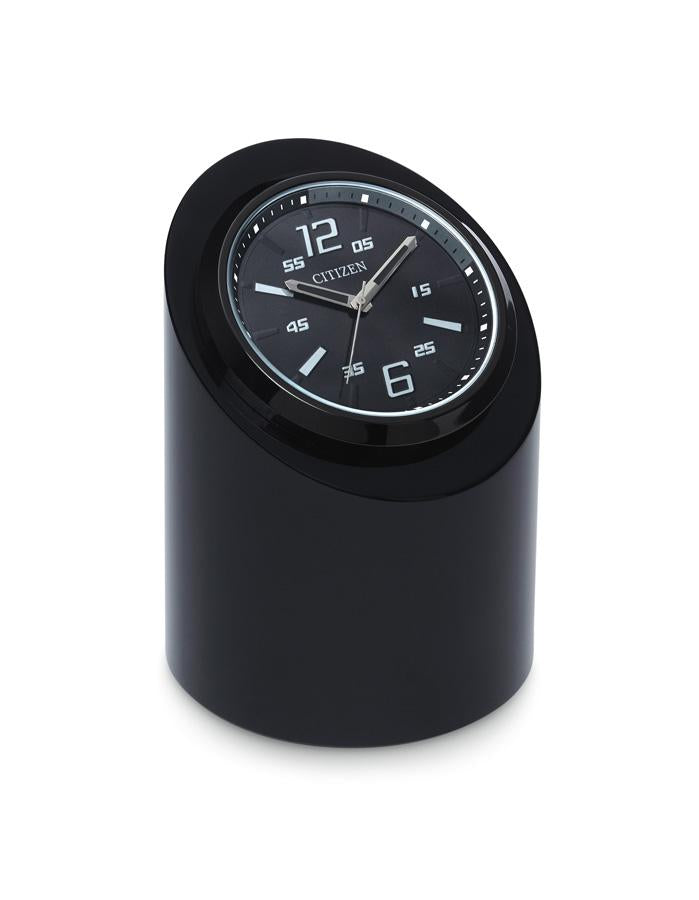 This standing Citizen Workplace desk clock provides a sleek and sporty feel to any work environment. The crisp lines of the black crystal base and monotone black bezel equip this clock with distinctive edge. A perfect addition to the desk of any athlete. Celebrate a workplace or athletic milestone with a custom engravable plaque.