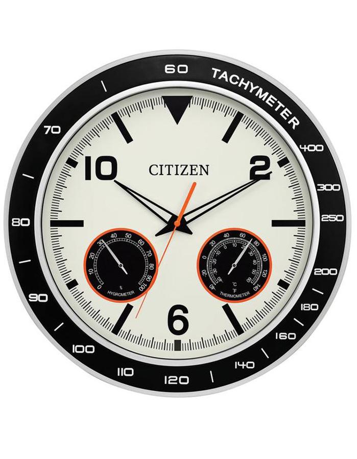 Give your outdoor space the upscale design is deserves with this Citizen Outdoor water resistant wall clock. Boasting a 18" diameter frame in black and silver-tone, luminescent hands, hygrometer (measures humidity), thermometer, and quiet continuous sweep second hand.