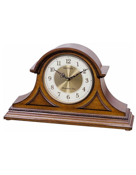 This classic mantel clock features melody and chime selections with a genuine wooden case and sound setting controls.