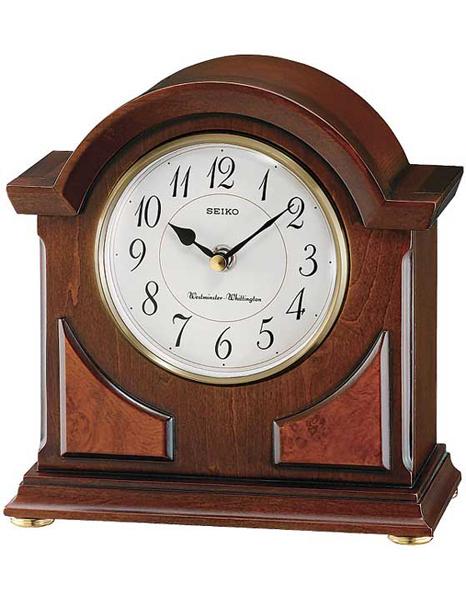 Seiko Brown Wooden Mantle Clock - White Dial - Westminster/Whittington Strikes