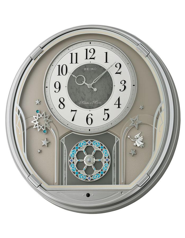 Perfect for winter decorating, this enchanting Seiko Melodies in Motion clock puts time in motion. Crafted with a silver-tone metallic case and decorated with Swarovski crystals, this model features volume control, light sensor to still music, chimes, and movement at night, and 18 melody selection.